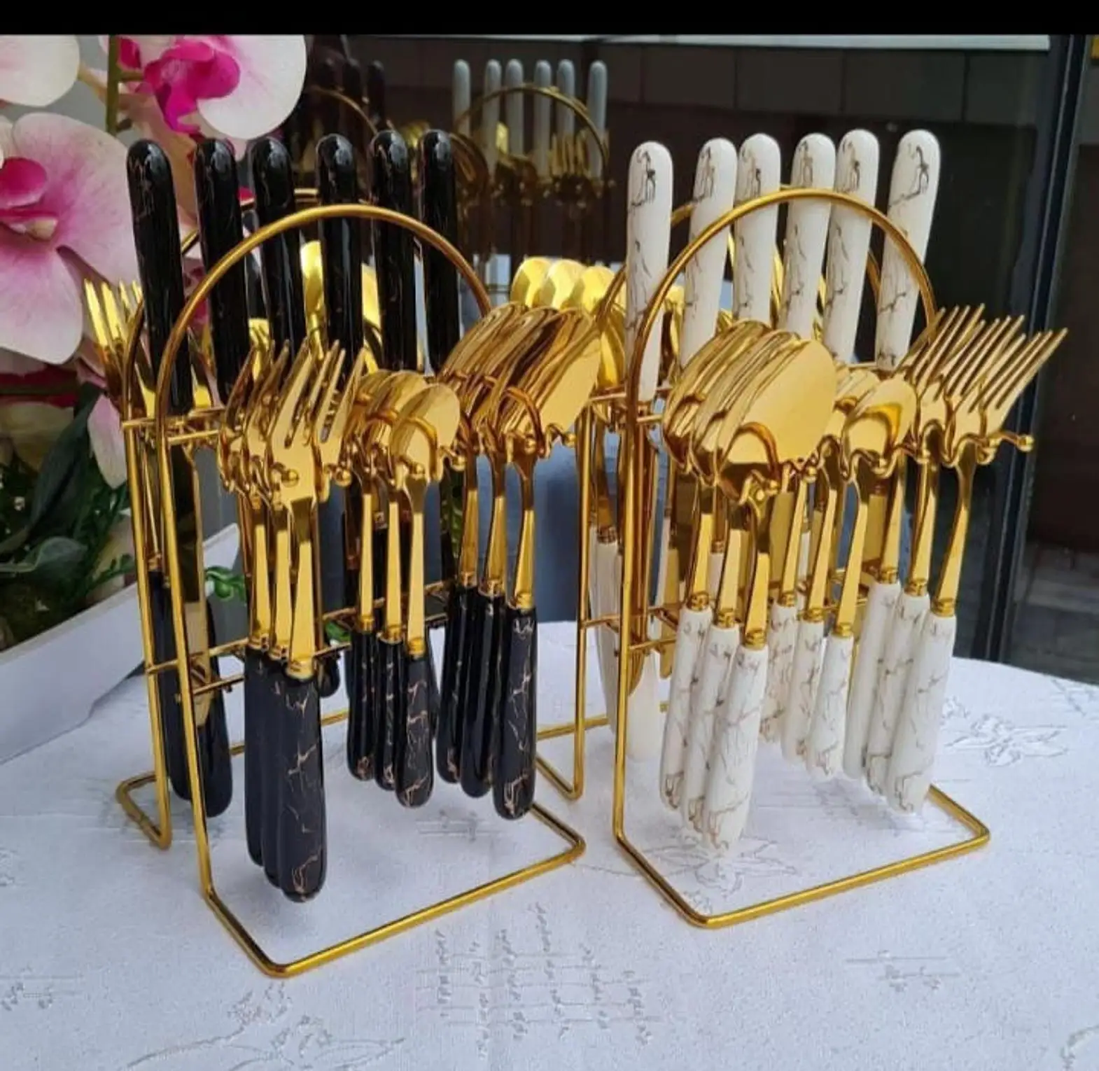 נירוסטה 24 יח 'קרמיקה ידית סכין מזלג כף שטוח כף מתלה ידית מתנה סט סט ערכת מזון מערבי בסגנון nordic סטים
